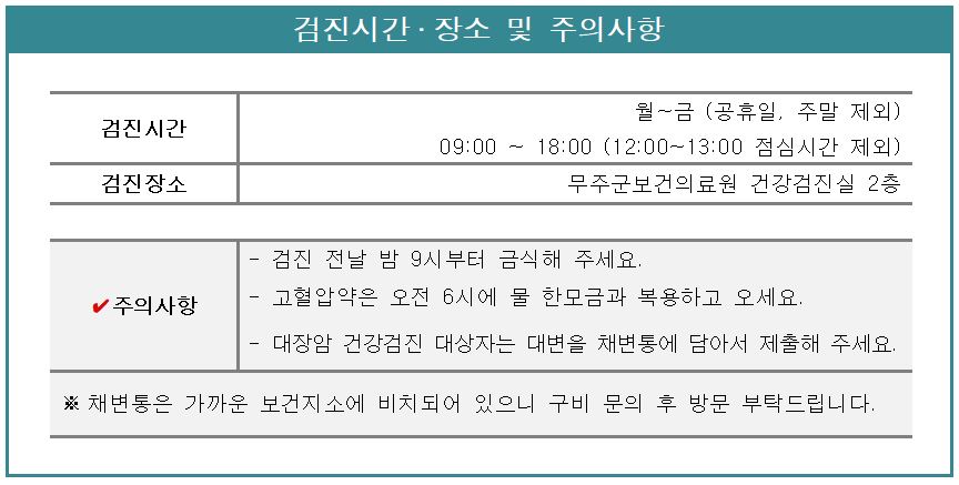 ※ 문의: 무주군보건의료원 건강검진실 (☎063-320-8331)