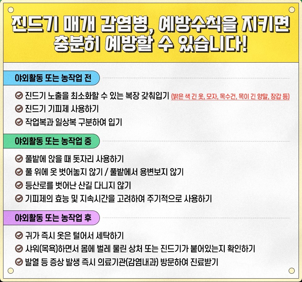 야외활동이 증가하고, 진드기매개감염병 중 하나인