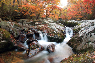 As a valley stretching around 0.3km from Baengnyeondam to Isokdae, it presents a fantastic view that the water flowing down makes the fall water and clouds of spray while touching the layer-on-layer rocks and peculiarly shaped ones at the same time.