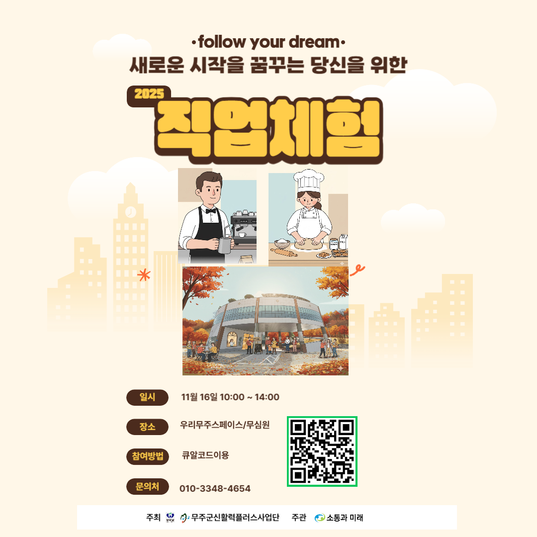 2025년 농촌신활력플러스사업의 일환으로 진행되는 직업체험(카페) 참가자를 아래와 같이 모집하오니, 많은 관심과 신청 부탁드립니다.